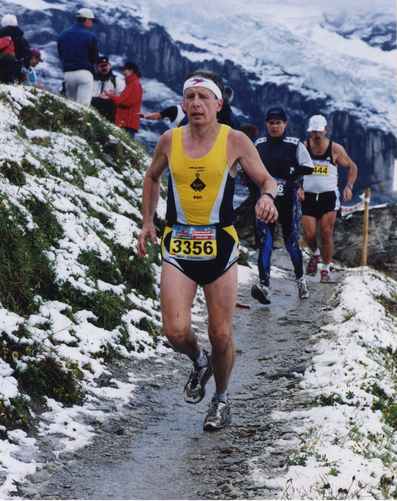 Dit had ik nog nooit meegemaakt en toen ik richting Wixi de afdaling indook zag ik een witte helling en tegen die witte helling moest ik nog richting finish. Gelukkig kreeg ik bij de drankpost in Wixi heerlijk warme thee aangereikt, die ik rustig opdronk, waarna ik begon aan de laatste beklimming richting Kleiner Scheidegg. Aan de finish werd ik door Annelies opgevangen, die me gelijk een trui aanreikte, maar mijn lichaam was door en door koud. Ik zocht zo snel mogelijk de douchetent op en liep onder de waterstralen van de douche. Ik wist na twintig minuten nog steeds niet, of ik nu onder een koude of warme douche stond, zo koud had ik het. Gelukkig begon het weer toch geleidelijk aan iets te verbeteren. Door het minder fraaie weer bleven we ook minder lang dan normaal op de Kleiner Scheidegg en kozen ervoor de trein naar Wilderswil te nemen. In het hotel aangekomen was ik weer opgewarmd en kon ik genieten van de toffe prestatie, die ik had neergezet. Een tijd van 4:22:57 in deze weersomstandigheden was voor mij een topprestatie en gaf mij veel voldoening.