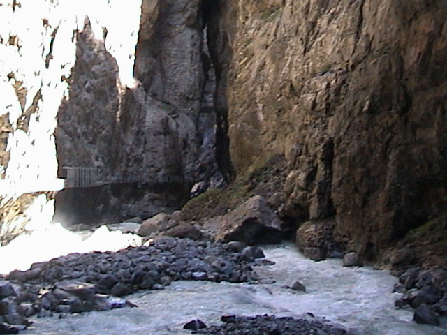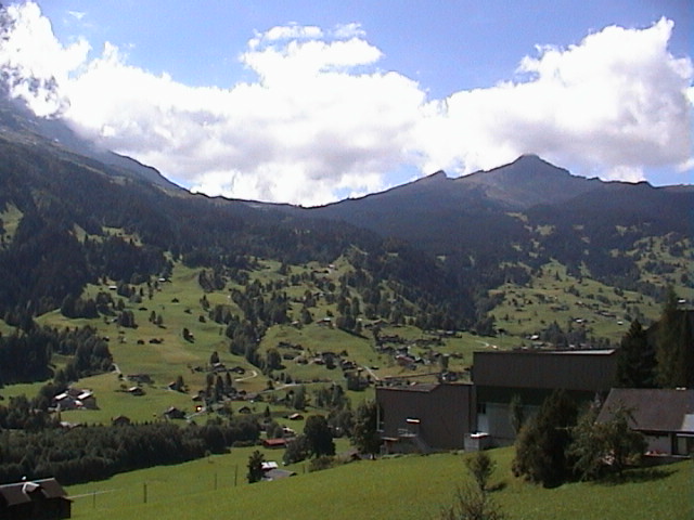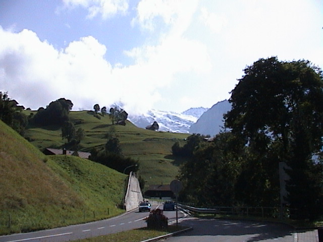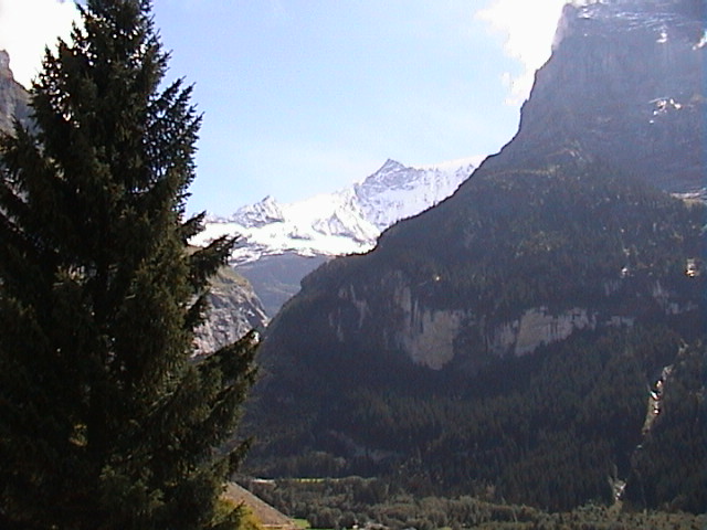 De zondagochtend zag er weer heel anders uit. De zon scheen en de temperatuur was aangenaam. We besloten naar Grindelwald te gaan, om daar een Gletsjerspalte te bezoeken. De hele dag scheen volop de zon en rond de middag was de temperatuur weer gestegen naar zomerse waarden. Na het bezoek aan de Gletsjerspalte gingen we op een terras in de zon lunchen en het was heerlijk vertoeven met een mooi uitzicht op het dal.