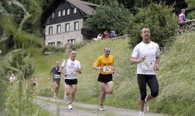 Ons wachtte daarna nog veel klimwerk, ondanks het feit, dat we al op 1300 meter hoogte waren aanbeland. Ook mochten we regelmatig wat dalen en dat was ook een welkome afwisseling op dit glooiende parcours. Vanuit Steg begonnen we dus aan de laatste 17 kilometer wedstrijd. Alleen natuur en een schitterend landschap zonder enig gemotoriseerd verkeer, alleen toegankelijk voor mountainbikers en lopers.